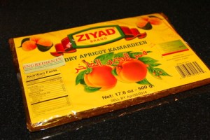 So this brings me to a lovely discovery I made thanks to my sister-in-law’s father who is Syrian. It is Syrian apricot leather and it’s delightful. You can purchase it in most Middle Eastern markets and it costs about $3.50 for a 500g package. It has a nice balance of sweet and tangy, enough real fruit lacing through it, and it’s just as fun to eat as fruit roll ups. I’m not sure if this is something that Syrian children typically eat, but I think if I were Syrian, it would have been a childhood favorite of mine.