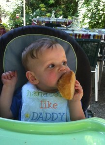 He also loves baguettes! It turns out that chewing on the heel of a baguette is what French babies do when their teeth hurt! So next time you have a little one whose gums need soothing, get a crusty baguette and give them the heel. It has an added bonus of keeping them quiet for a while.