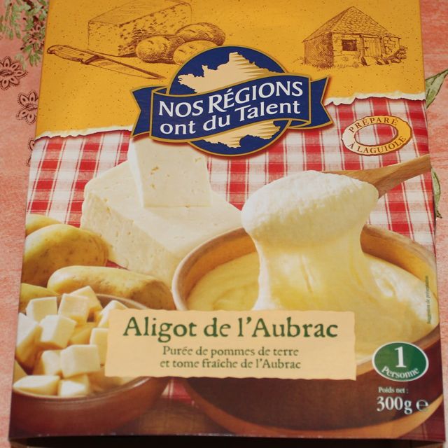 According to the package, this product is made with the following ingredients: Potato purée, fresh Tome de l’Aubrac cheese, whey, salt. Tome de l’Aubrac is an un-aged (fresh) version of the cheese Cantal, a mountain-style cheese from Auvergne (other mountain-style cheeses include fondue-friendly cheeses such as gruyère and emmental).