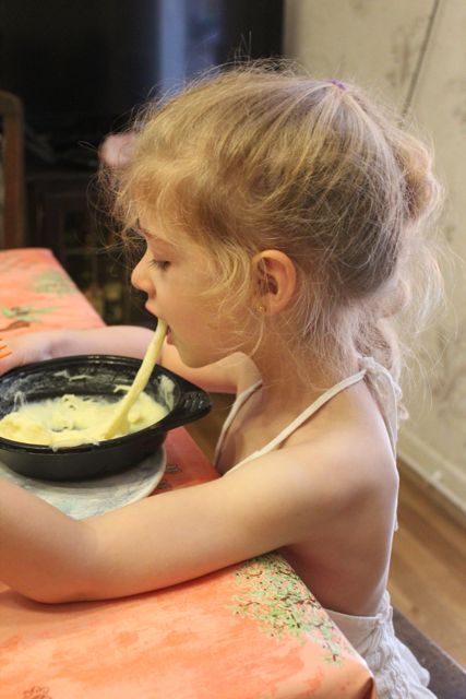 Today, I would like to introduce you to a food that I tried for the first time in a little bistro in Paris. It took me by surprise because it’s a simple food but with a very unique texture. It’s called Aligot and it’s basically mashed potatoes with cheese. But the unique thing about aligot is that the potatoes are puréed finely and then enough cheese is added to give the potatoes a smooth, stretchy texture. The experience of eating it lies somewhere between mozzarella sticks, mashed potatoes and bubble gum. More than anything, it’s a really FUN dish to eat, and is guaranteed to go over well with kids. I confirmed this today with my niece who loved the stringy strands of cheesiness.