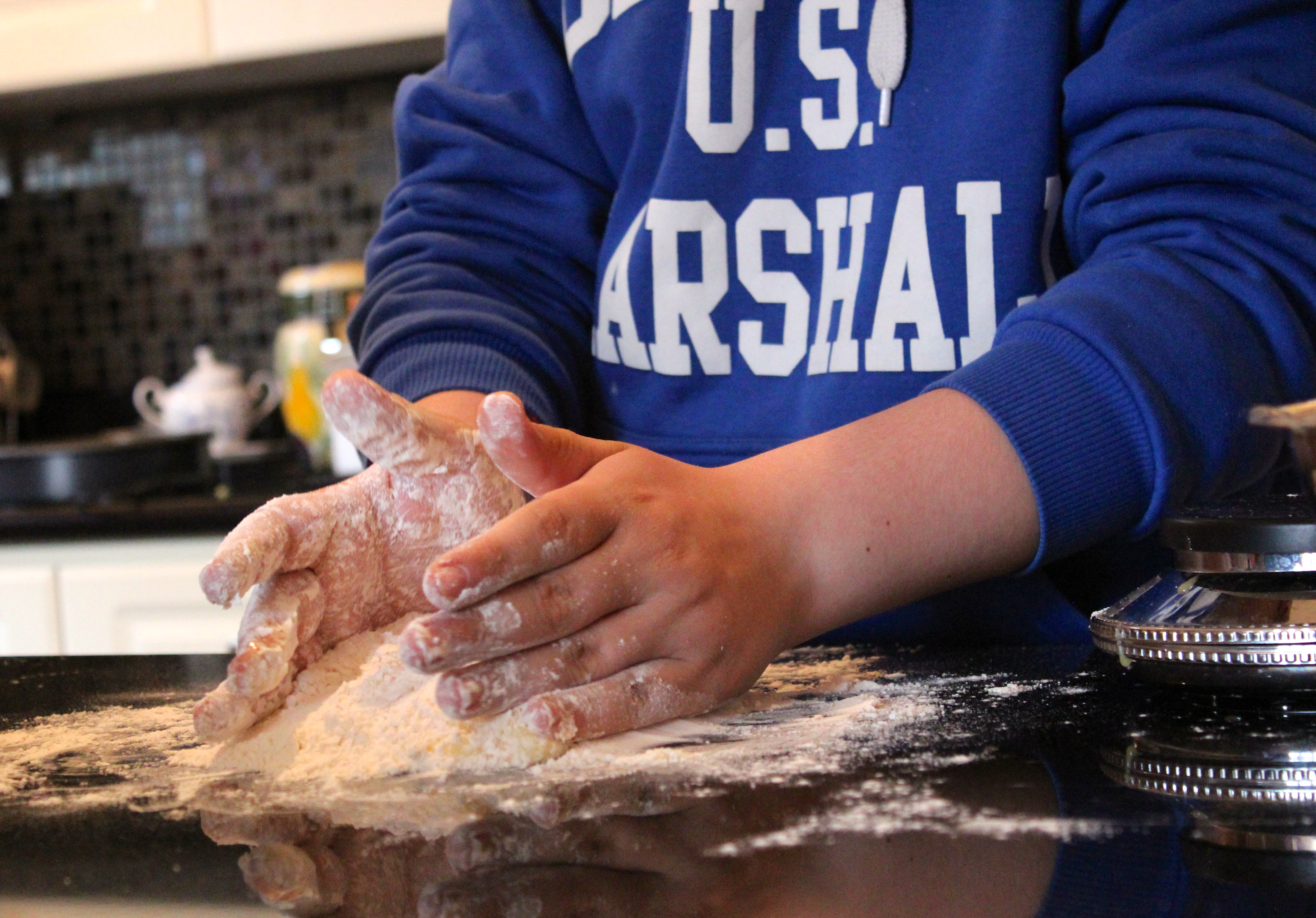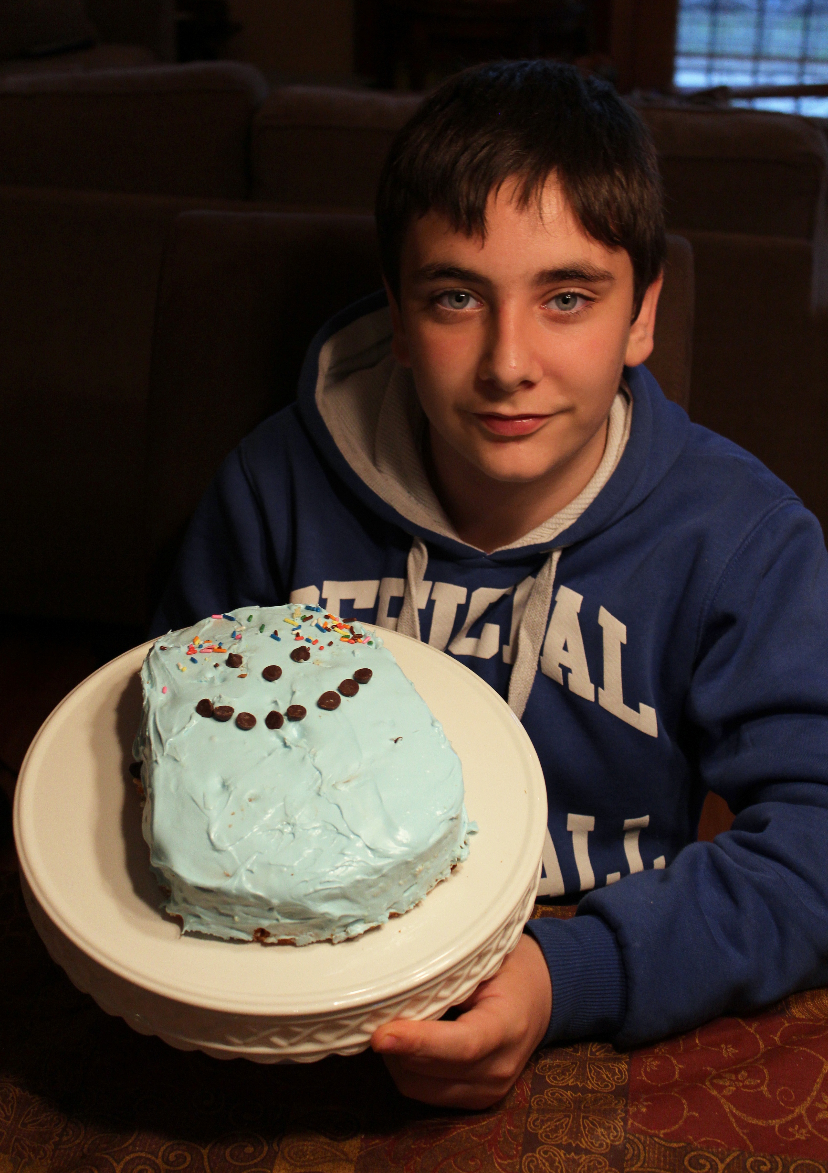 J’étais très contente d’apprendre que notre cousin Tom, qui a 12 ans, aime aussi faire la cuisine. Puisqu’on avait toujours quelques heures par jour à la maison pendant que Damien faisait sa sieste, on avait du temps pour s’amuser dans la cuisine. Quand j’ai proposé à Tom qu’il m’aide à écrire un article de blog dans lequel il parlerait de plats qu’il aime faire, il avait un tas d’idées. Ce qu’il préfère c’est la pâtisserie, donc au cours de son séjour, il nous a fait deux gâteaux que je vais partager avec vous. Dans les deux cas, on fait bon usage de bonbons qu’on peut acheter facilement au supermarché.