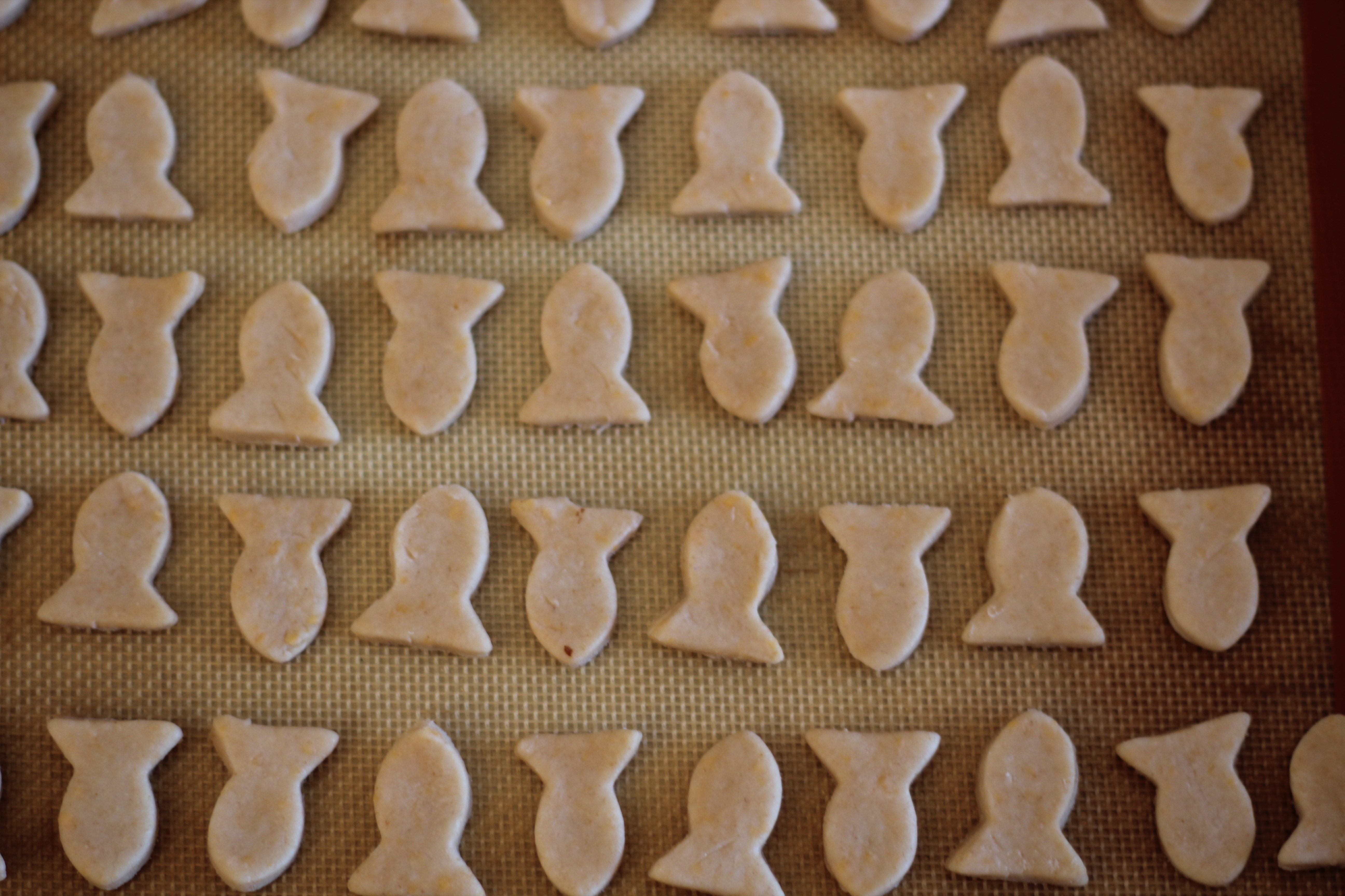1. We made these yesterday! I made the goldfish-shaped cutter by bending a piece of spring steel I had lying around. I used a mixture of cheddar, mozzarella, and parmesan (basically whatever I had around). They were soooooo yummy!!! We had so much fun making them too.