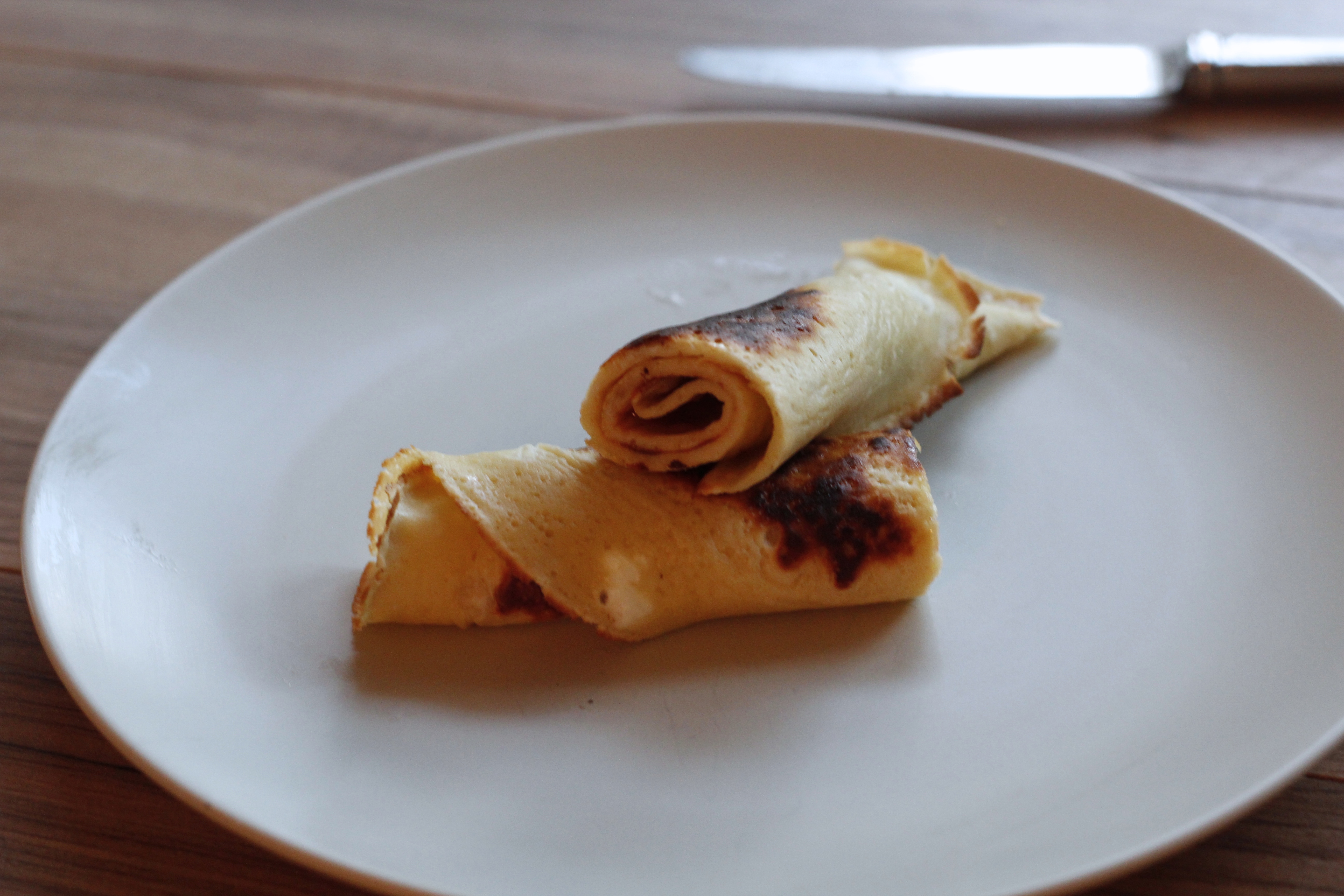 Remove from pan and spread with butter and jelly or top with a sprinkling of cinnamon sugar, then roll or fold the crêpe.